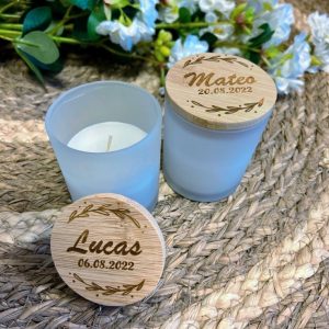 🕯️ La vela tiene 7 cm de diámetro, el tarro es de cristal y la tapa de madera de bambú.